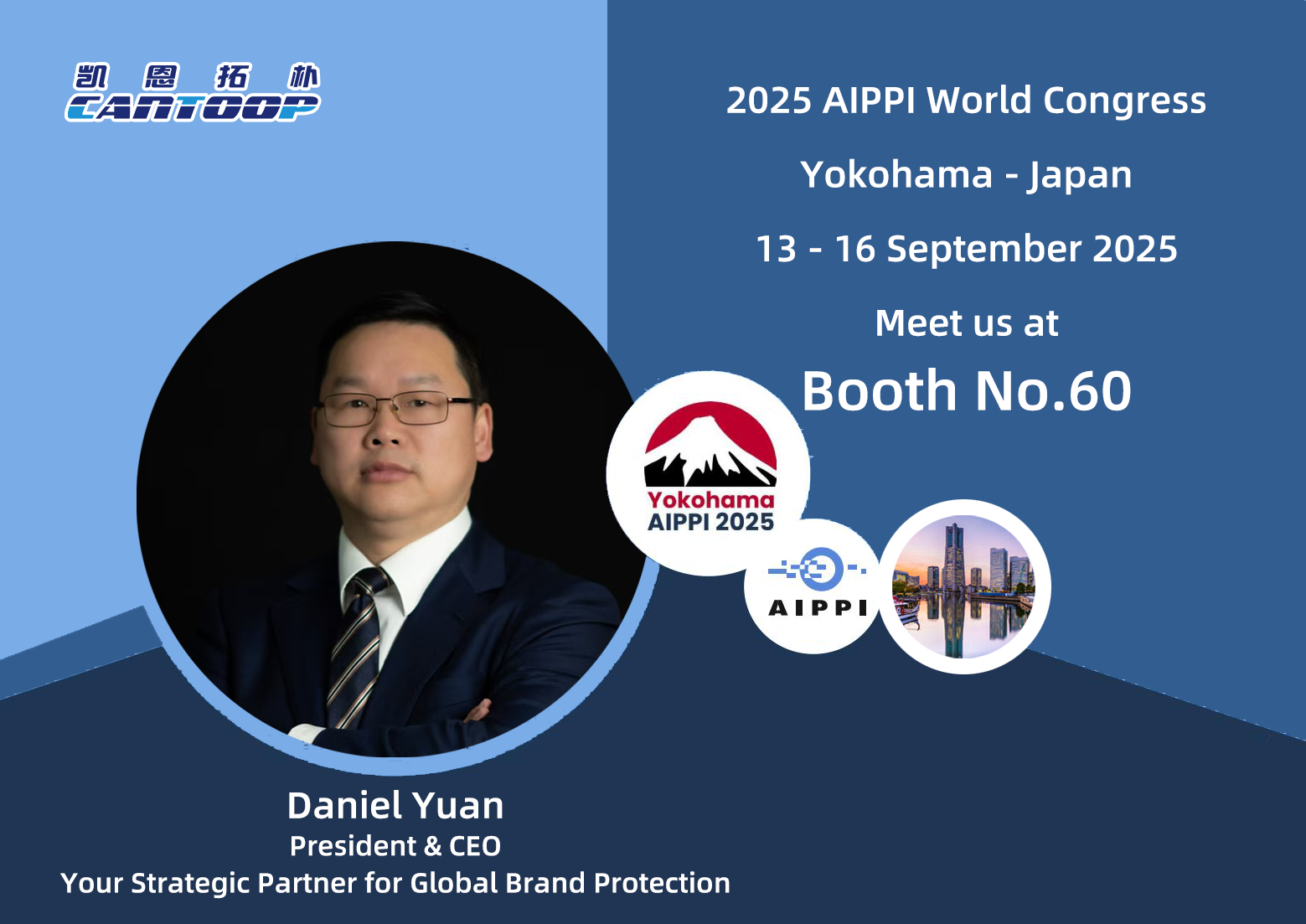부스 60! CANTOOP은 요코하마 AIPPI 세계 지적 재산권 회의에 여러분을 초대합니다!